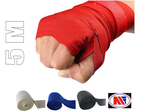 Main Event Boxing 5m Pro-Stretch Cotton Mix Hand Wraps – Black, Red, White, Blue